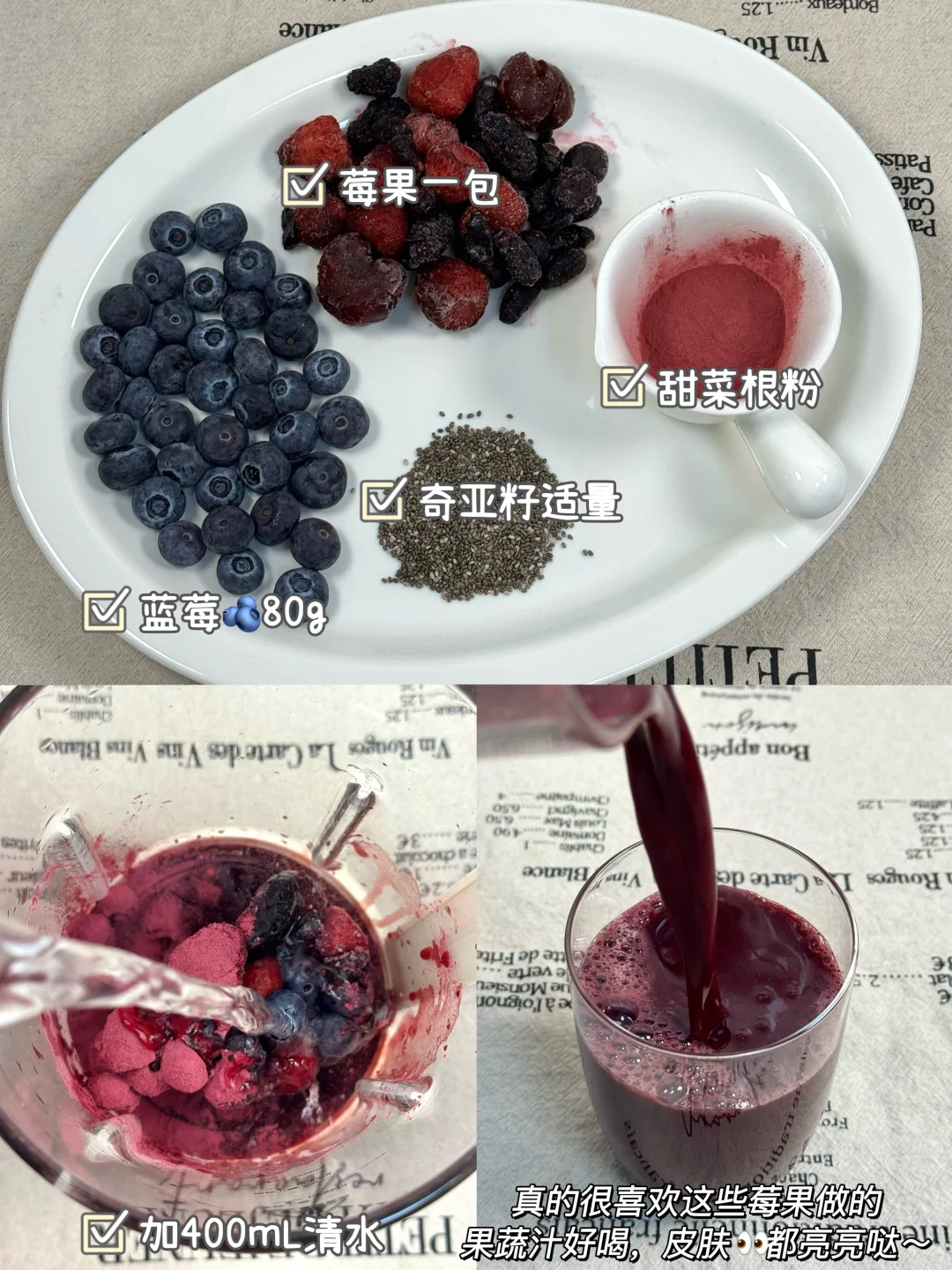 2️⃣蓝莓🫐➕混合莓果➕奇亚籽➕甜菜根粉