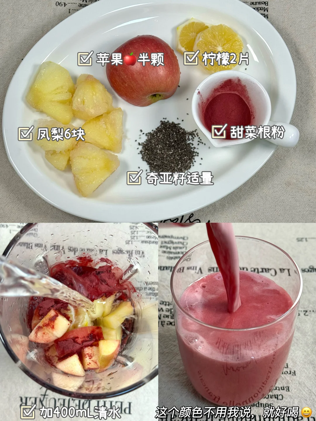 3️⃣凤梨➕苹果🍎➕奇亚籽➕柠檬🍋➕甜菜根粉