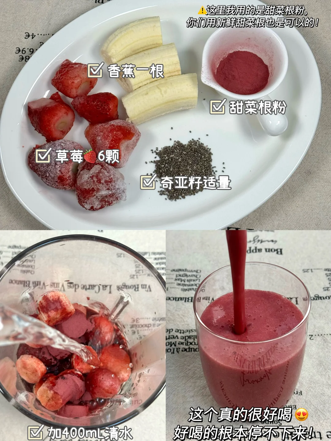 1️⃣草莓🍓➕香蕉🍌➕奇亚籽➕甜菜根粉