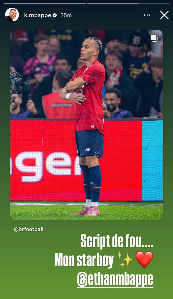 本场比赛,姆巴佩也来到了现场进行观看。赛后,他在社交媒体上发文祝贺弟弟:“疯狂的剧本。我的明星男孩。”✨