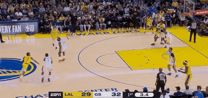 虎扑10月06日讯NBA季前赛,湖人对阵勇士的比赛正在进行中。