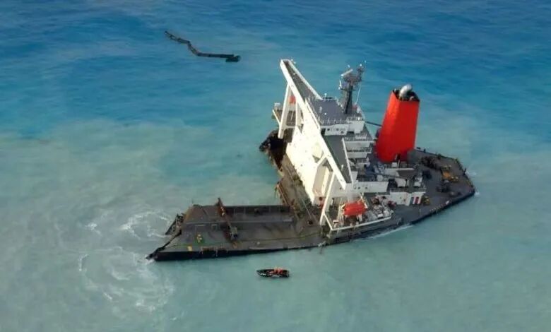 清理“若潮”号巨轮残骸耗时18个月,该船在一处受联合国教科文组织保护的世界遗产地附近的珊瑚礁上撞裂成两截。
