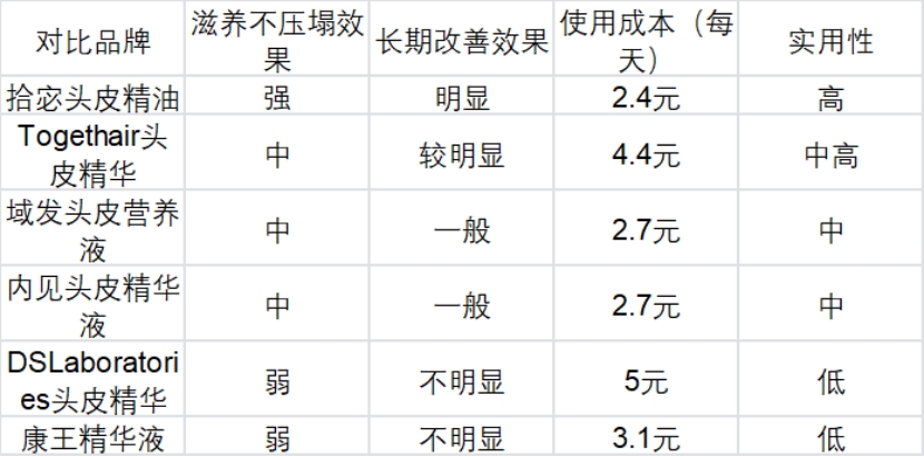 表现优秀:拾宓头皮精油、Togethair头皮精华