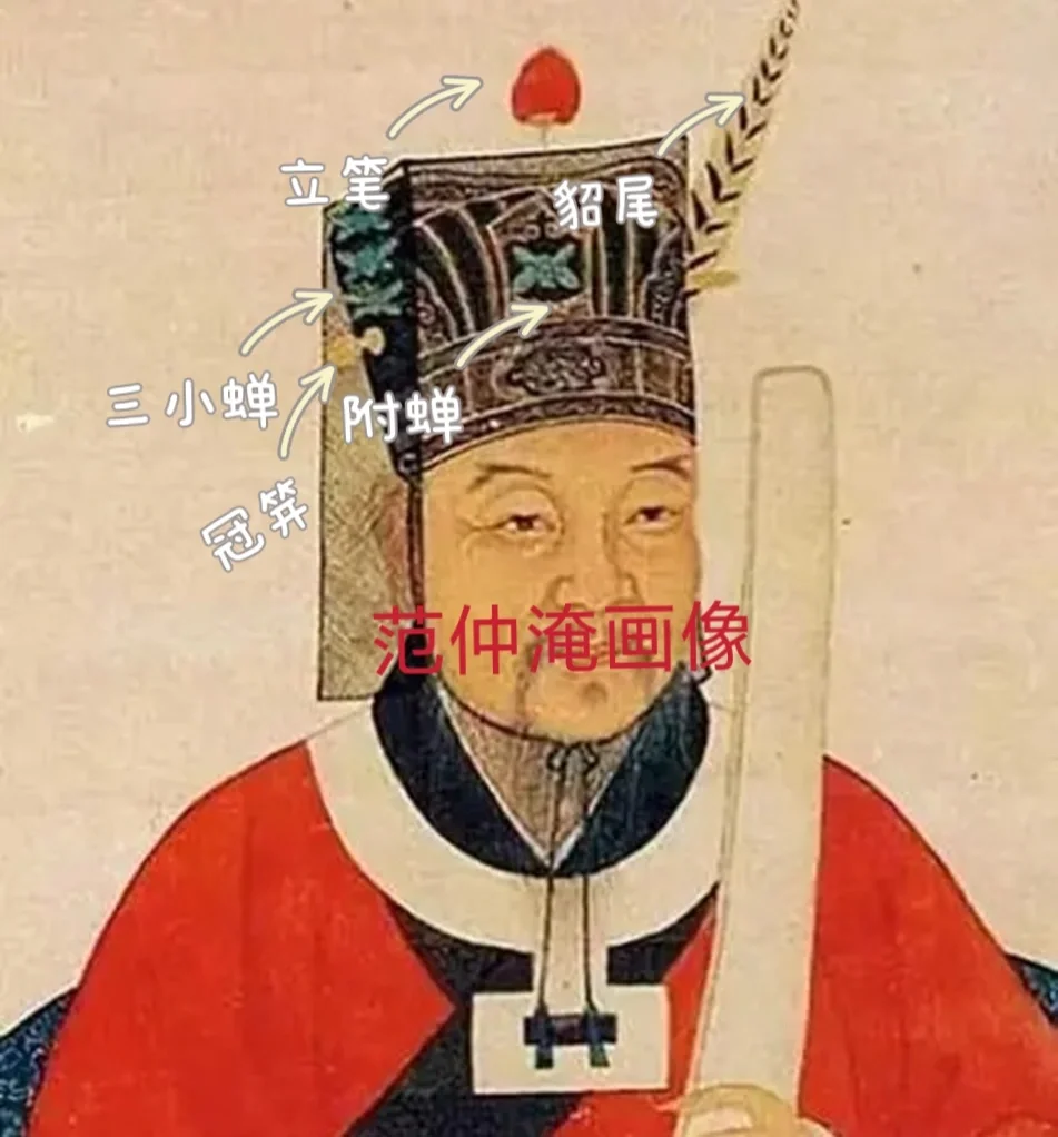 🌈原来此冠为貂蝉冠,是由笼巾加在进贤冠上组成的。