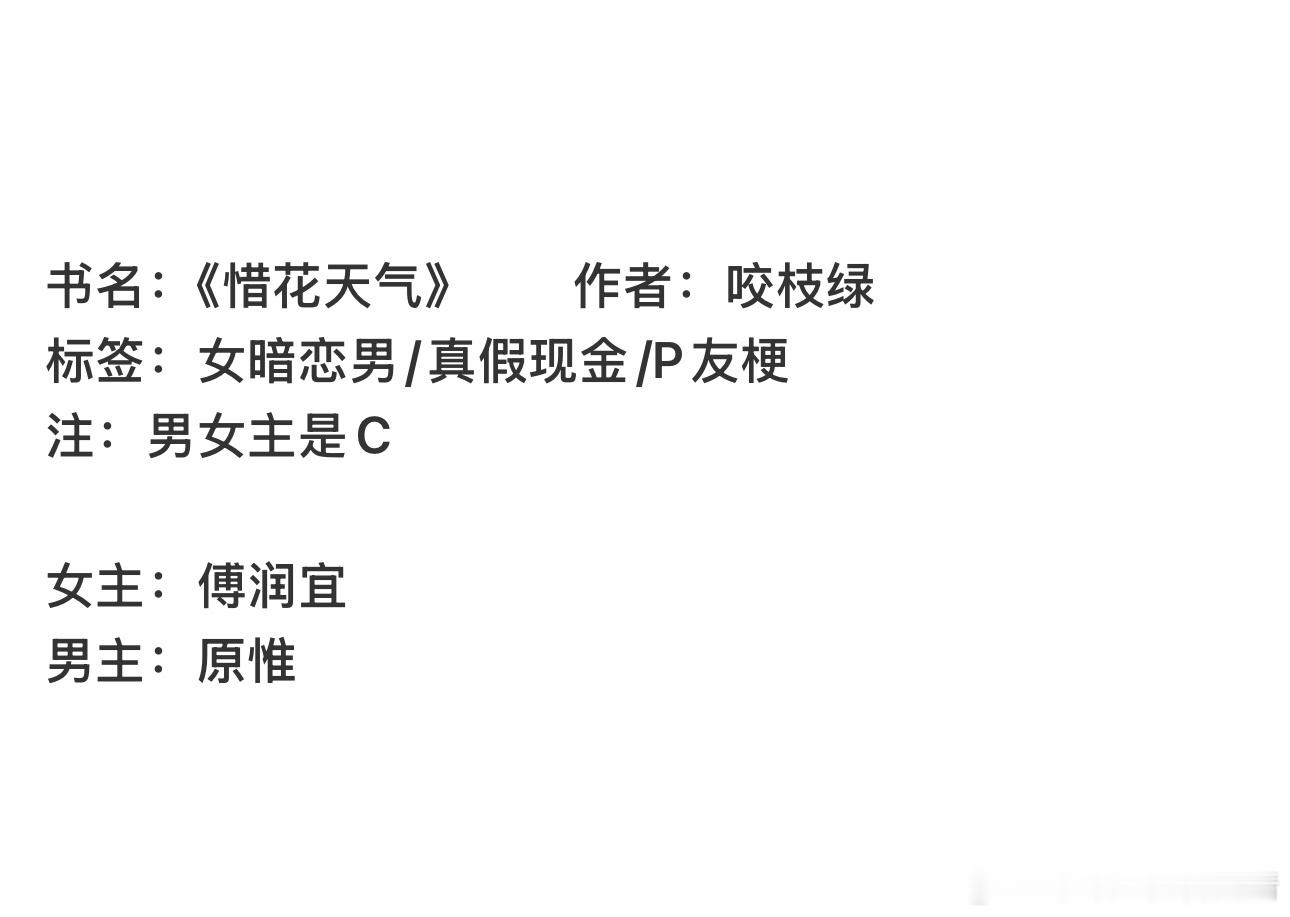 书名:《惜花天气》 作者:咬枝绿言情小说推荐