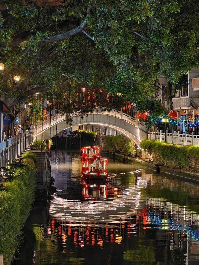 月光、小桥、水波、游船、花灯、