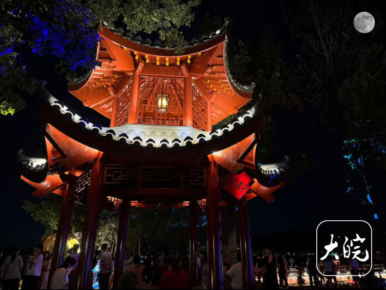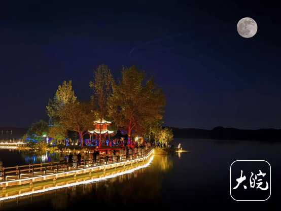 今年国庆中秋假期,随着平天湖1号桥附近的平湖栈桥等夜游景点的成功改造完善,夜赏平天湖已不仅限于莲花台周边,平湖夜色美正从从莲花台畔一路延展至平湖栈桥。这个中秋团圆夜,明月、湖光、彩灯与游人的笑容交织,莲花台的热闹与平湖栈桥的雅致相映成趣,不仅让众多市民游客度过了一个团圆祥和的中秋之夜,也让平天湖的赏月体验又增添了新的景致。