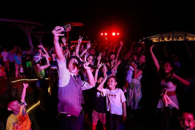 承接音乐会的艺术余温,10月6日的“月下摇摆·湖畔烟花”中秋家宴将节日氛围推向高潮。从午后开启的“声动海湾”音乐狂欢趴,到夜晚以BossaNova为旋律的“星空摇摆夜”舞会,参与者们从聆听者转变为沉浸其中的表演者。随着压轴“石梅湖烟花秀”的璀璨绽放,中秋的团圆内涵在即兴的舞步与共同的欢呼中,升华为一段段真实而温暖的情感记忆。