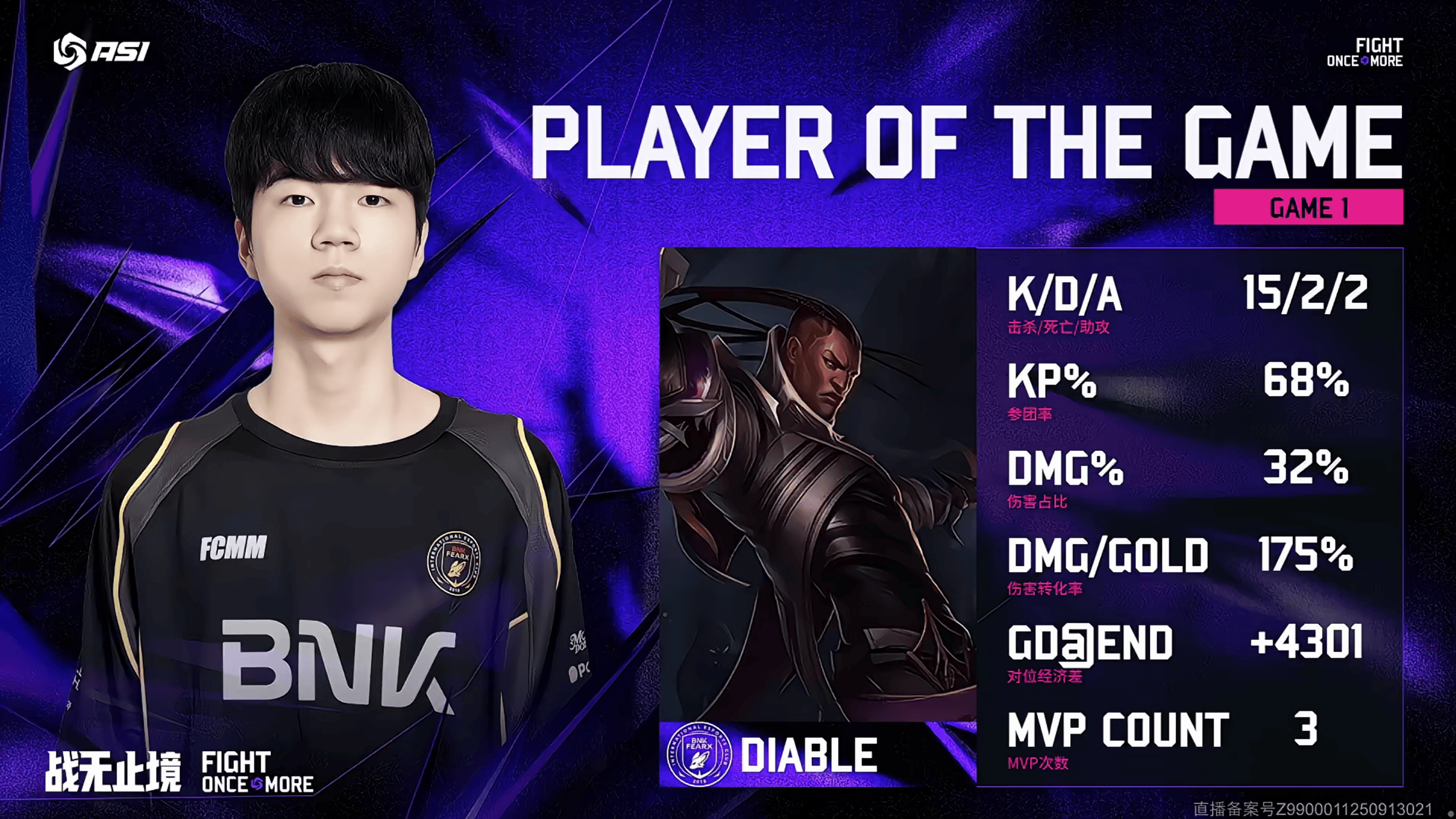 Diable卢锡安打出15/2/2战绩,拿下BFX对阵NIP第一局MVP