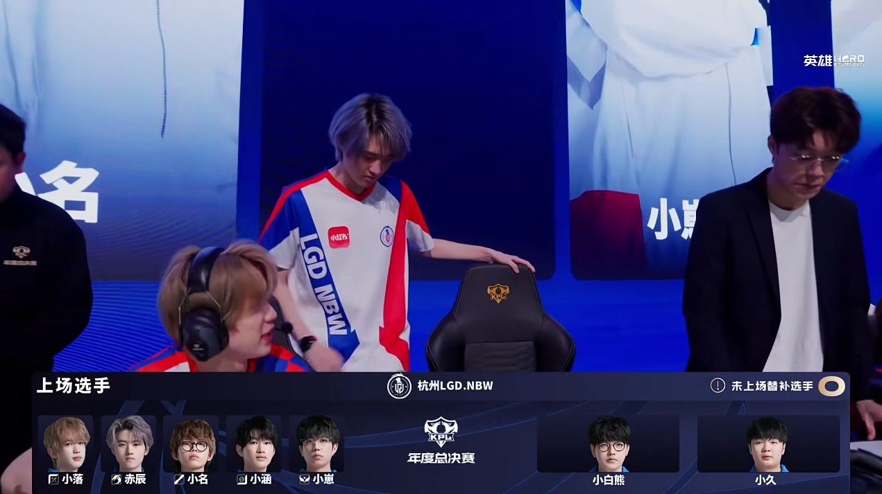 虎扑10月07日讯2025KPL年度总决赛第9日第2场,LGD.NBW第3局触发大师轮换,赤辰小涵换上,小白熊小久换下。