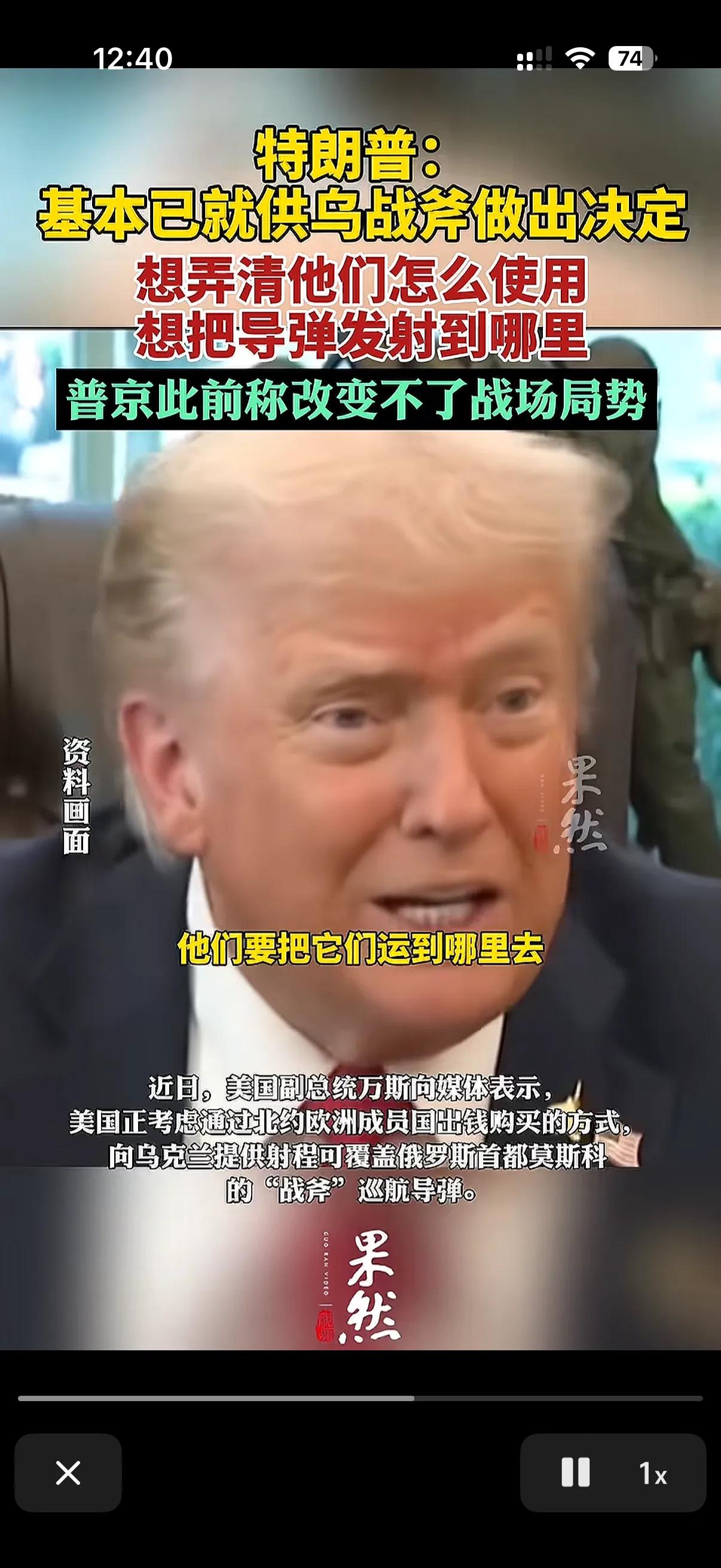 特朗普看来是铁了心的支持乌克兰泽连斯基了,这不泽连斯基说如果没有战斧导弹,自己和俄罗斯的谈判就不能得到公正。 按理来说,美国是不允许出口战斧导弹给乌克兰的,要知道战斧导弹可是战略导弹,属于洲际导弹。 意味着乌克兰从自己家发射就可以直接攻击到乌克兰聚焦俄罗斯乌克兰局势莫斯科。 可是现在看特朗普发表的演讲,压根就没考虑卖不卖战斧导弹!而是直接回复记者说,我们现在只需要知道泽连斯基买了战斧导弹要干什么,我们要运送到哪! 言外之意,那就是肯定会将战斧导弹卖给乌克兰,只要泽连斯基能够给美国一个合理的借口就可以了! 泽连斯基早就给出了借口,那就是买战斧导弹为了和平! 看来乌克兰的战争恐怕没有大家想象的那么乐观了!