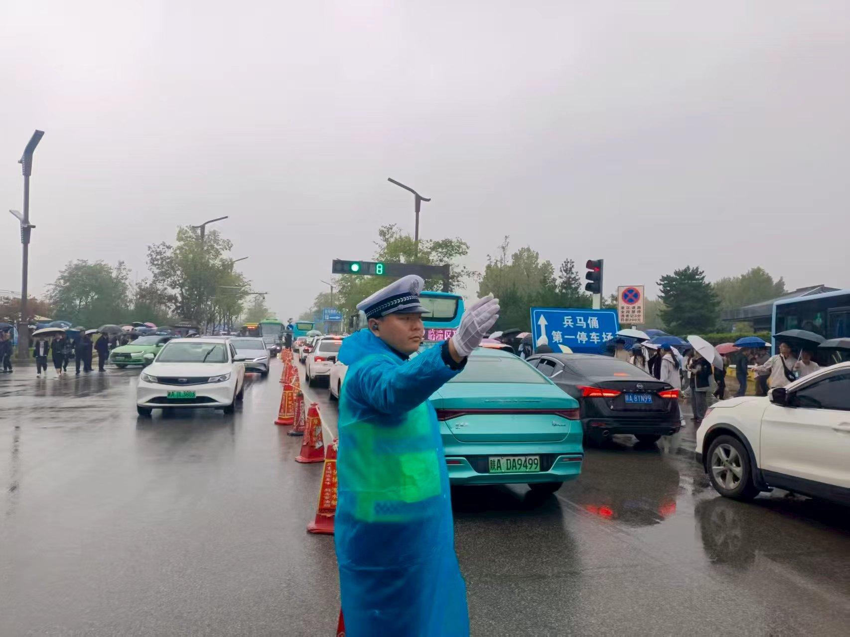 针对辖区重点路段,公安临潼分局交管大队要求民辅警提前两小时到岗,在兵马俑专用线收费站出口、停车场入口设置分流引导点,同时在华清池门口易拥堵十字路口增派警力轮岗。在兵马俑专用线收费站出口,车流密集,执勤民警始终专注指挥车辆有序分流,引导车辆进入停车场。其间,民警还主动帮助行动不便的老人过马路,协助走失游客与家人团聚。“本担心雨天堵车耽误游玩,看到交警这么负责,路上踏实多了。”来自重庆的游客王女士说。
