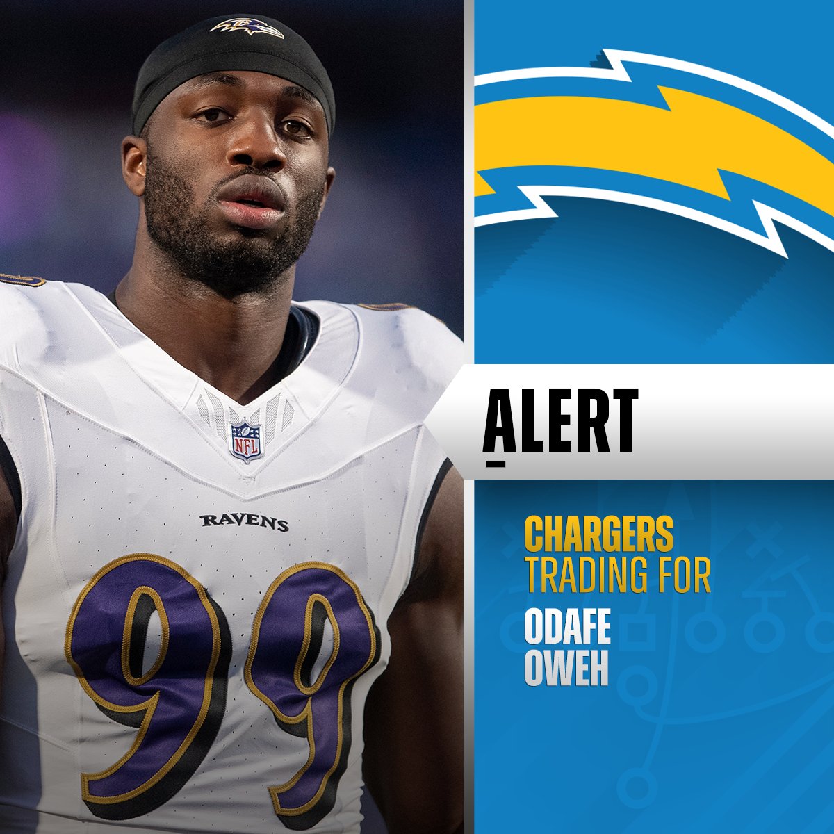 NFL官方X账号发推特报道,乌鸦队将防守端锋OdafeOweh交易至闪电队。(via@RapSheet,@MikeGarafolo)