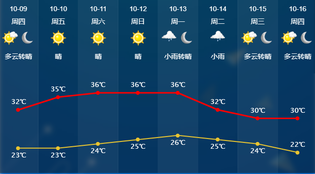 随着弱冷空气抵达,今明天最高气温略有缓和,在31~32℃,只是这股冷空气实力不足,10日后高温再次重返。随后在14日气温再次下降,降温+降水格局开启,天气再次变凉。气温升降频繁,天气不断转折,需要时刻关注,并注意身体健康!