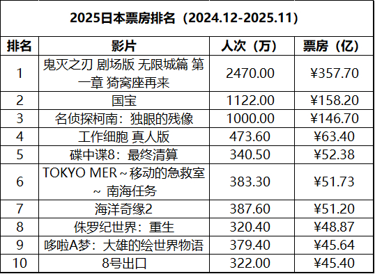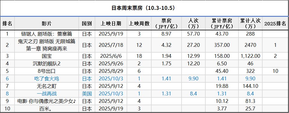 1.《链锯人 剧场版:蕾塞篇》三连冠,累计票房突破40亿日元;