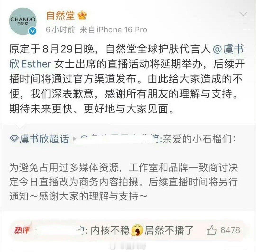 就是说虞书欣的新剧《一念江南》不开机,《双轨》迟 迟 不定档,欣欣子的商务也被 影 响 到 了啊,对接称虞书欣物料调整的时候,瞬间get到粉丝天塌了,目前虞书欣本人也没回应何时进组,有点心疼守护虞书欣的粉丝们了~