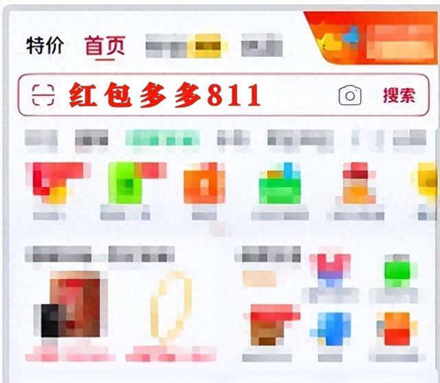 2.在APP首页找到搜索框京东APP搜索:“红包多多811”“红包到手766”“红包到手606”。