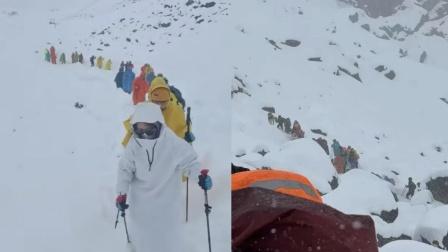 10月4日,珠峰东坡突降罕见暴雪,帐篷被压垮,120名徒步者陷入绝境。次日一早,向导“无极”毅然带着一只随行小狗,在齐腰深的积雪中“人肉开路”。从业十几年未遇如此极端天气,他每一步都如履薄冰。历经近9小时艰难跋涉,队伍终于在傍晚安全抵达山脚,一名队员感动之下转账5000元致谢。