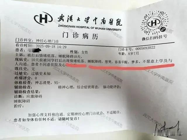 八岁女童在校遭踢伤下体 ,校方处理态度引众怒! 武汉一名三年级女童的遭遇令人揪心。课间擦黑板时,她与同班男生发生争执。对方朝她腹部和下体连踢数脚。 受伤后女童不敢告诉老师。放学回家才发现下体流血。医院检查结果让人心痛。外阴损伤,处女膜部分缺失。 这还不是最糟的。孩子连续多日出血。夜晚失眠多梦。经诊断患上应激障碍。现在只能休学在家。 男童家长愿意赔偿八千元。这个数额与三万医疗费相差甚远。由于肇事者未满刑事责任年龄。警方无法立案处理。 学校态度更让人寒心。至今没有处分打人学生。记者采访时时校方推给教育局。建议转学的方案家长也不满意。这不是女童第一次在校受伤。一年级时曾被同学推倒骨折。当时选择了忍让。这次家长决定用法律维权。 事件引发对校园安全的思考。未成年不是逃避责任的借口。学校管理缺失需要正视。孩子的身心健康谁来守护。 每个孩子都该在安全环境学习。事后处理不能总让受伤者迁就。建立完善的校园纠纷机制刻不容缓。 参考资料 :根据封面新闻报道整理