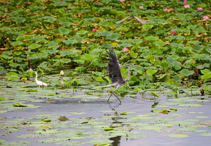 苍鹭、白鹭等鸟类在衡水湖畔栖息。陈康摄