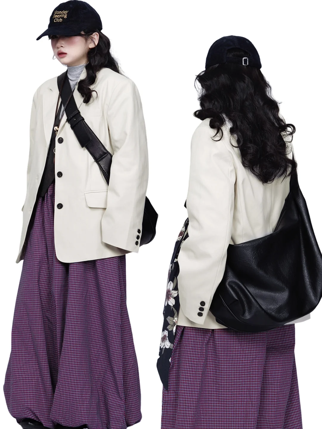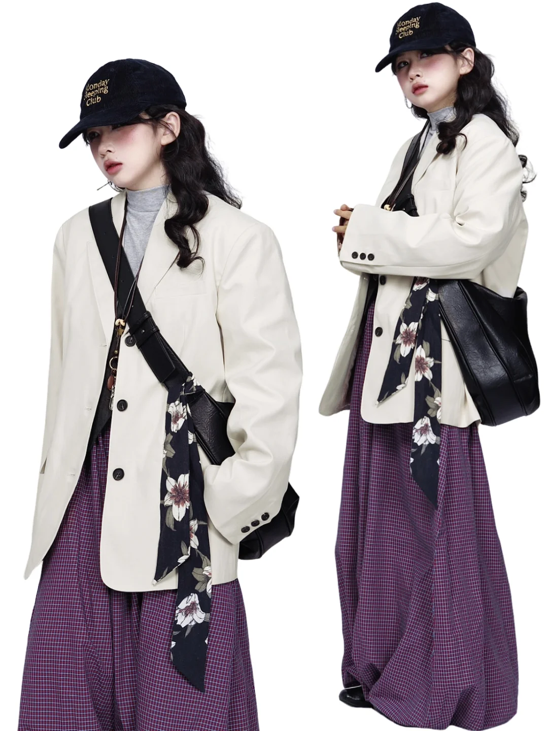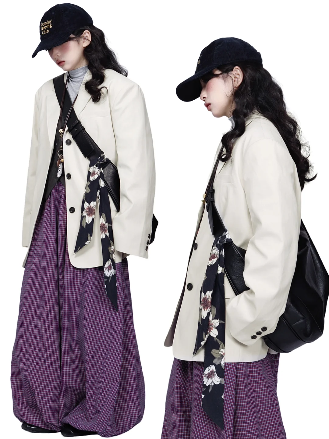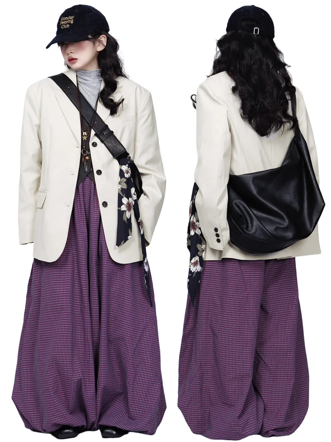 复古艺术生配色*☂️西装叠穿✖️紫色裙裤look