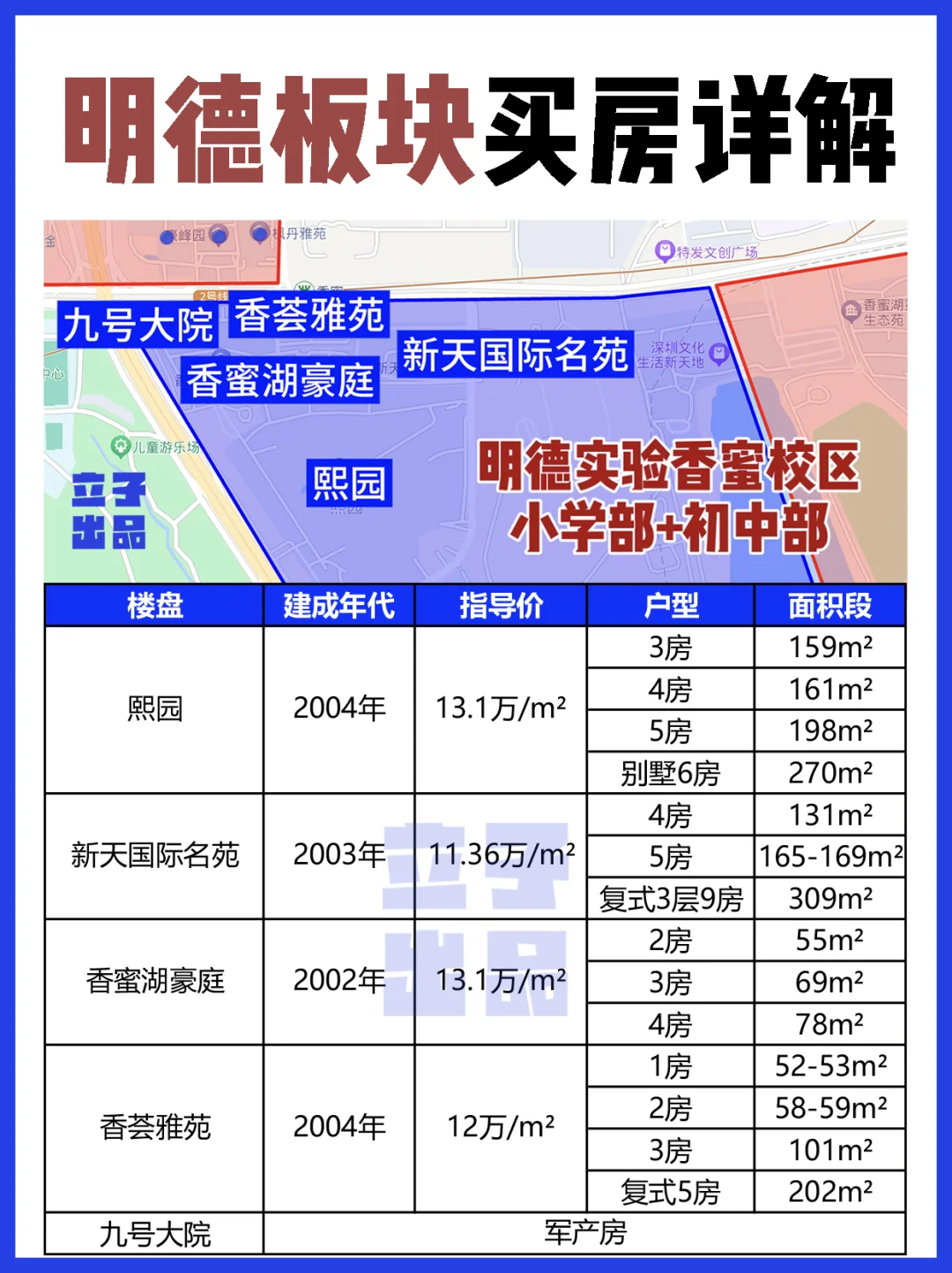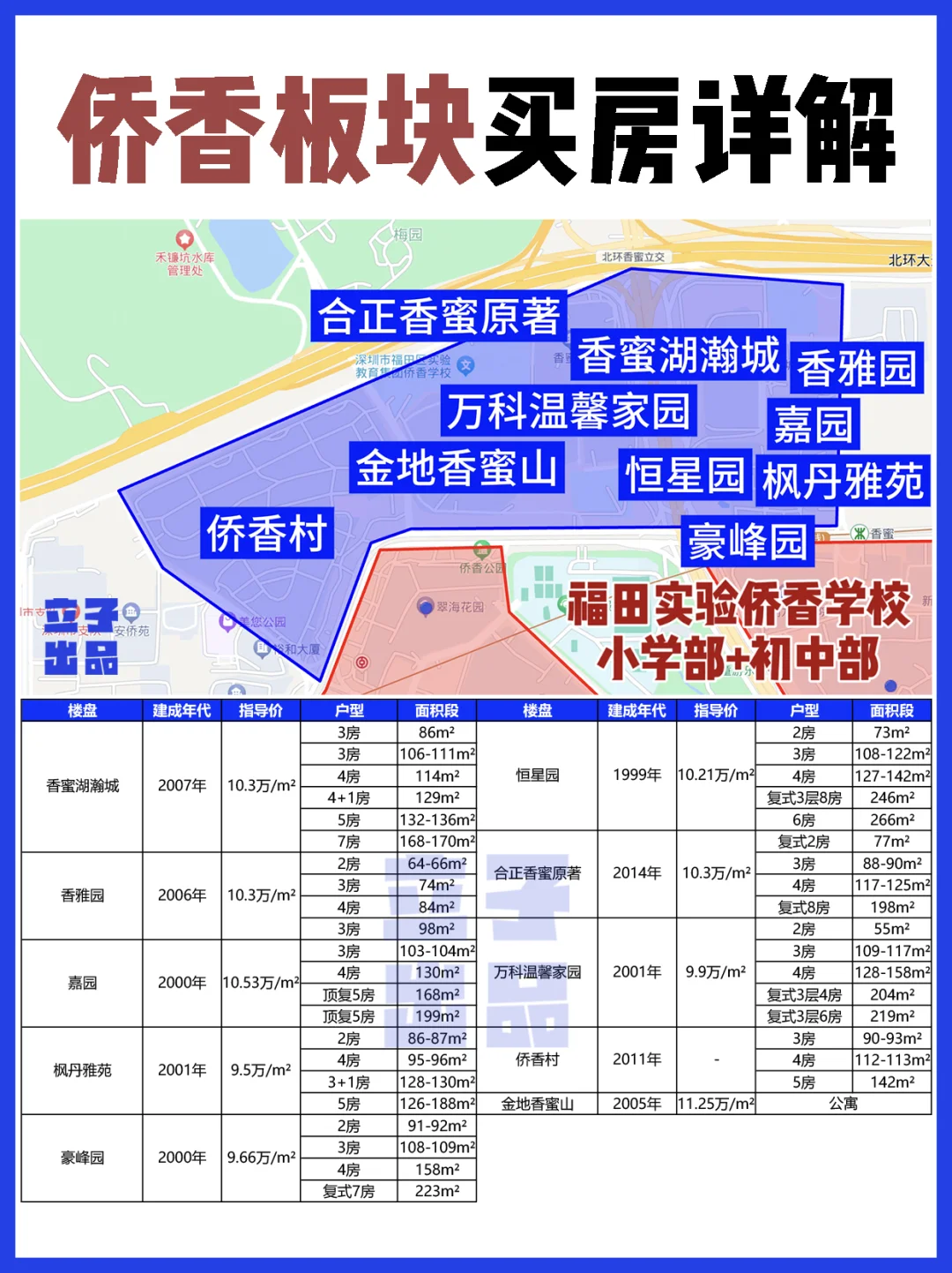 📍侨香板块:亲民型改善区,带侨香学校双学校,房价在香蜜湖内属低位,1000万内可购入3 房,适配预算有限的改善群体