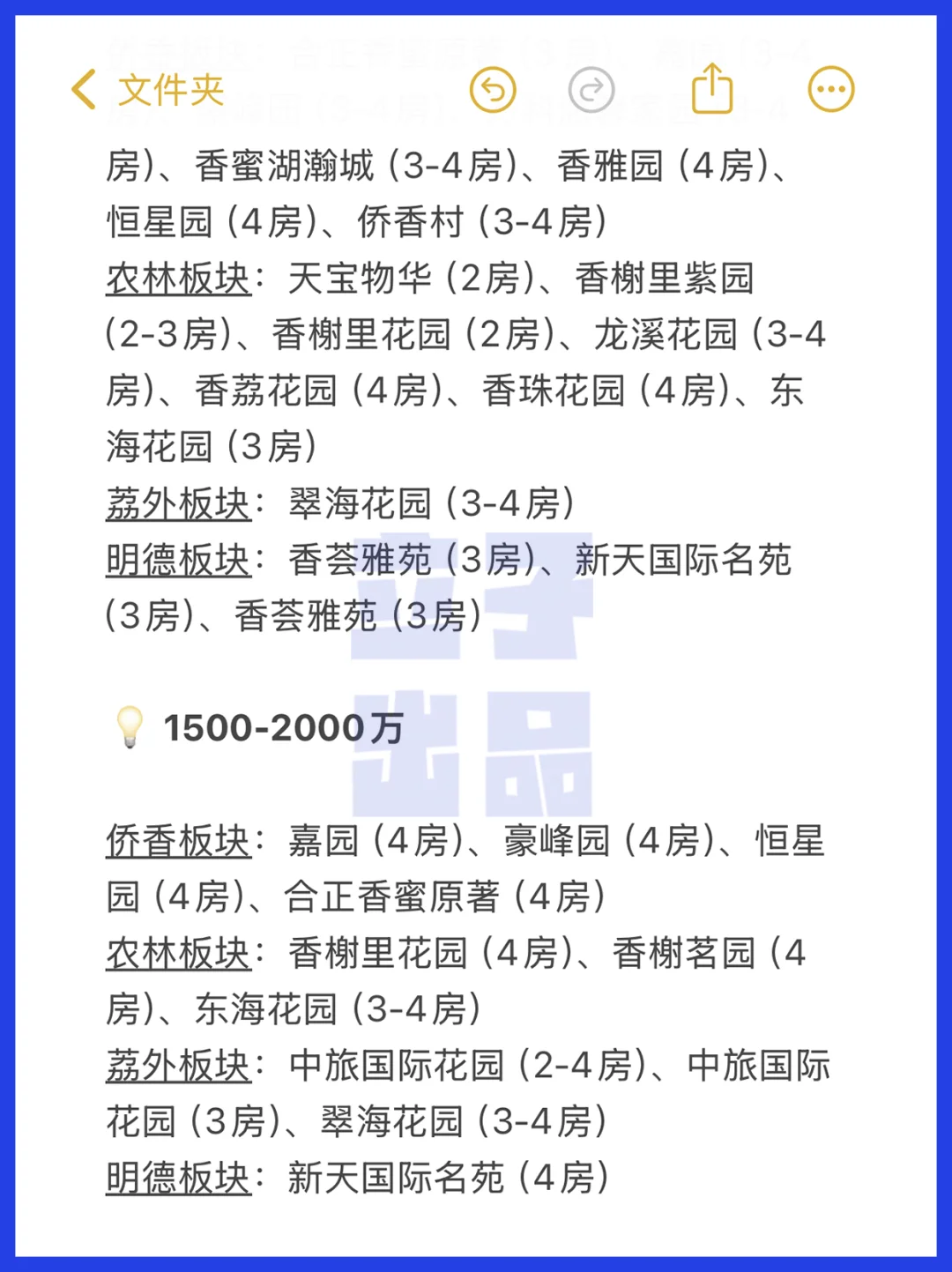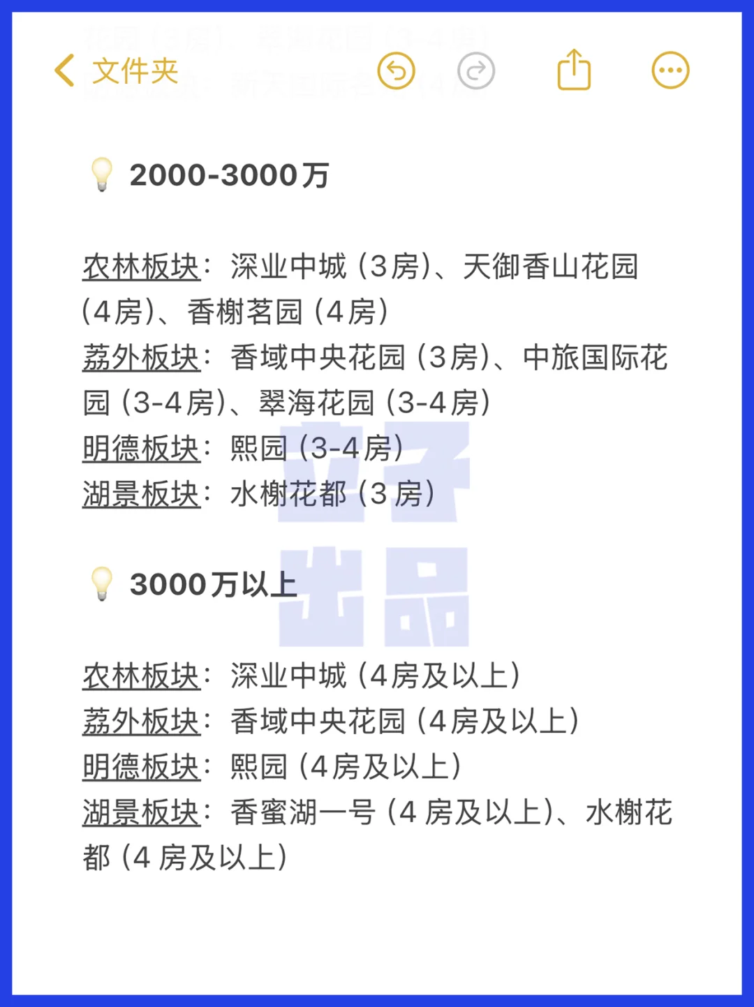 🌟板块排序: 湖景板块>荔外板块≥明德板块>农林板块≥侨香板块
