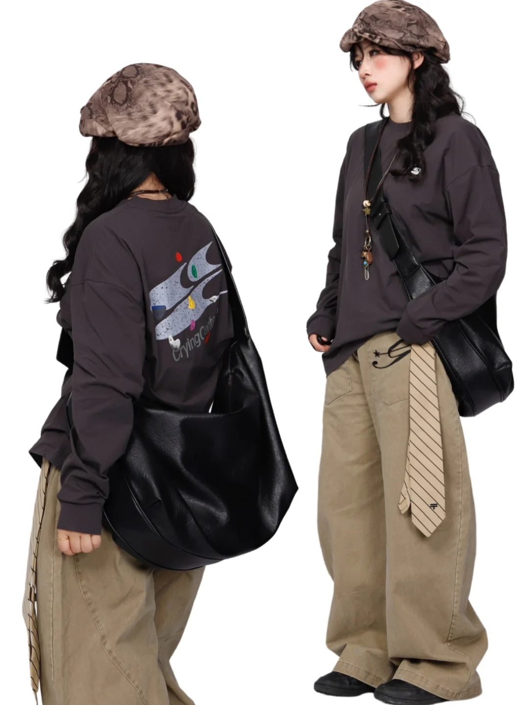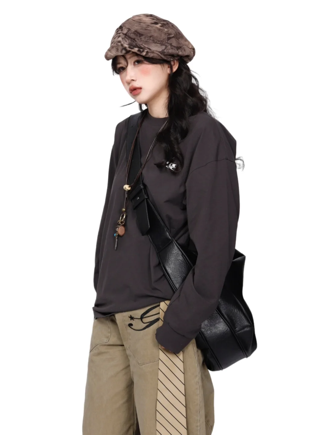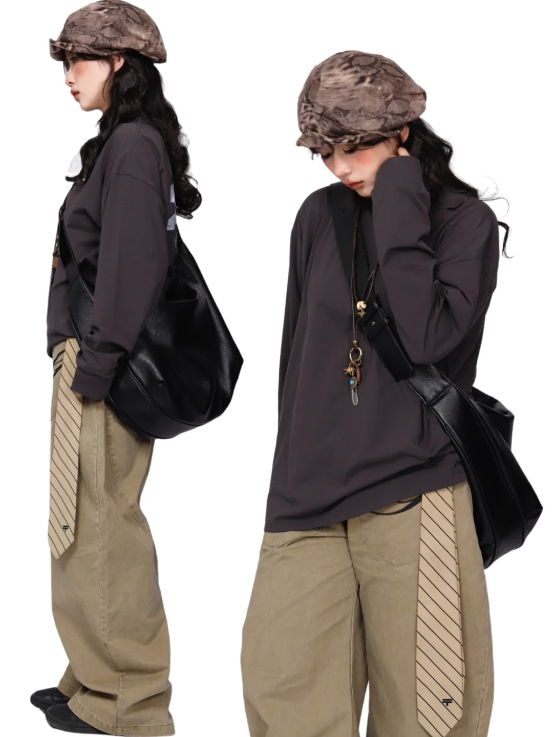 美式酷Girl*🍂基础款长袖✖️卡其工装长裤