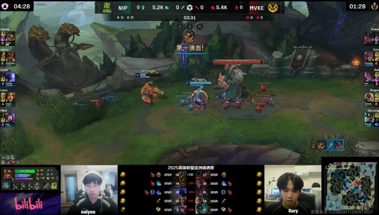 [24:28]NIP入侵MVKE野区,naiyou皇子被Shogun飞机点掉,Leave希维尔小送一个,MVKE打出0换2,经济落后6k。