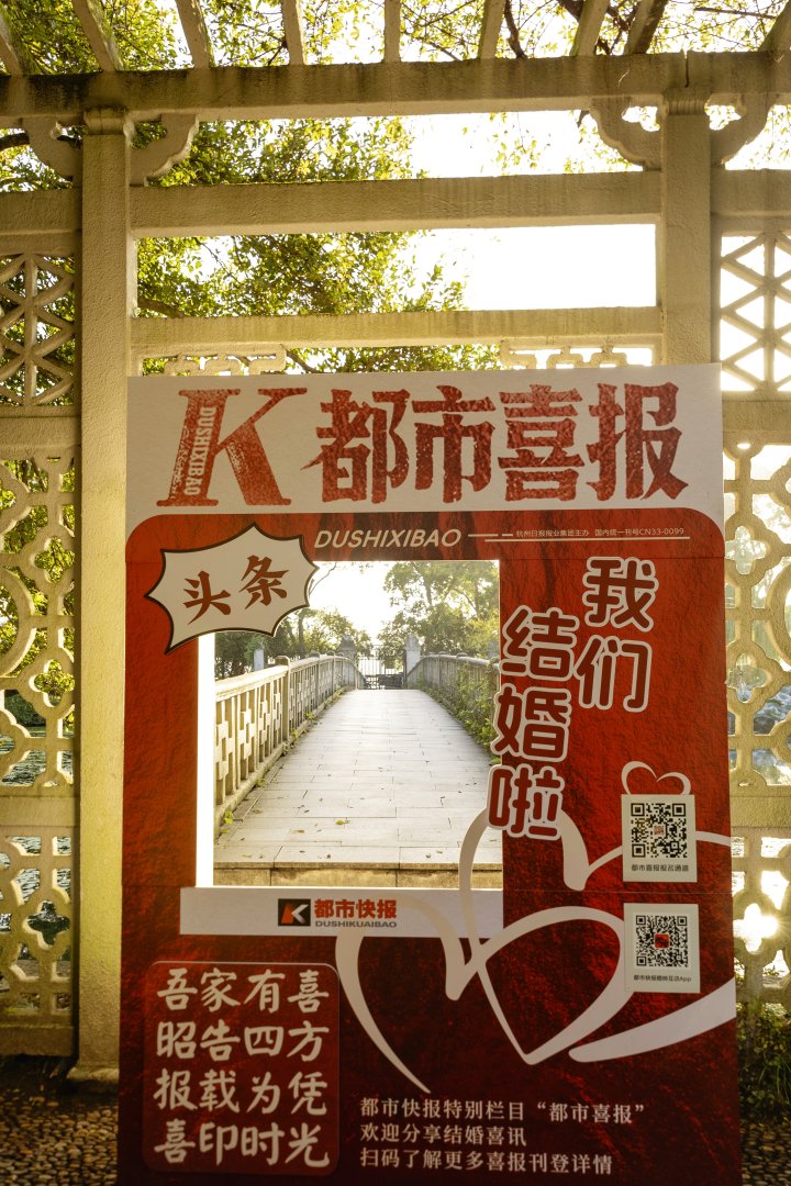 橙友@yiyi舟老兵:假如有结婚的新人,可以到花港观鱼东门左边的林园里与都市“喜”报合个影吧。
