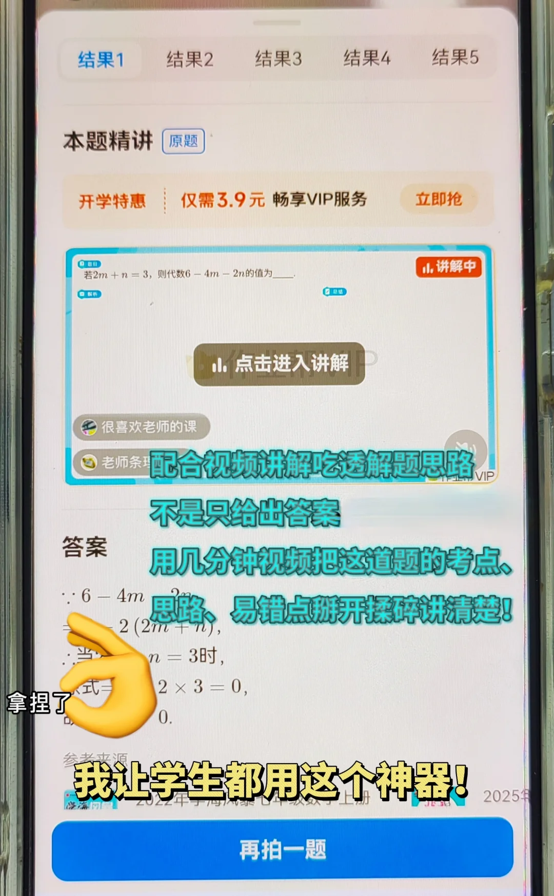 孩子遇到基础题总是容易卡壳,开学季到了,我悄悄给孩子用了「作业帮」,真的省心不少: 题目一拍,1秒出解析,不用等第二天问老师。每道题都有讲解思路、考点和易错点,同时还可以直接批改作业,AI精准诊断错因,解析详细,帮孩子真正搞懂、练会。最后,基于弱项推荐习题,拒绝无效刷题,只练该练的。 孩子懂了“为什么这么做”,基础实打实了,成绩自然稳。 我建议:先让孩子自己思考,卡住了再用它点拨思路。 很多用过的朋友都说,孩子现在问题都问得更准了! 真心推荐给为数学发愁的家庭,用好工具,开学轻松起步。