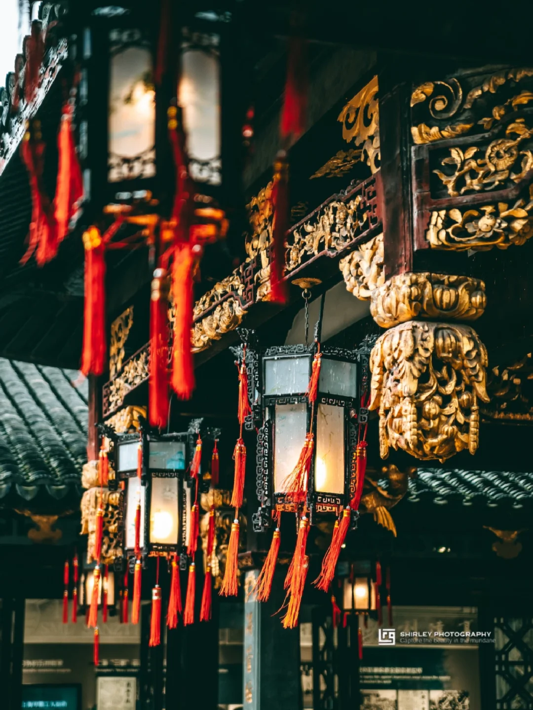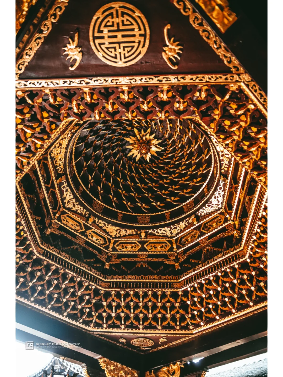 ▫️古戏台的螺旋藻井赚尽快门,全木质结构却因为刷满金箔而显得金碧辉煌。