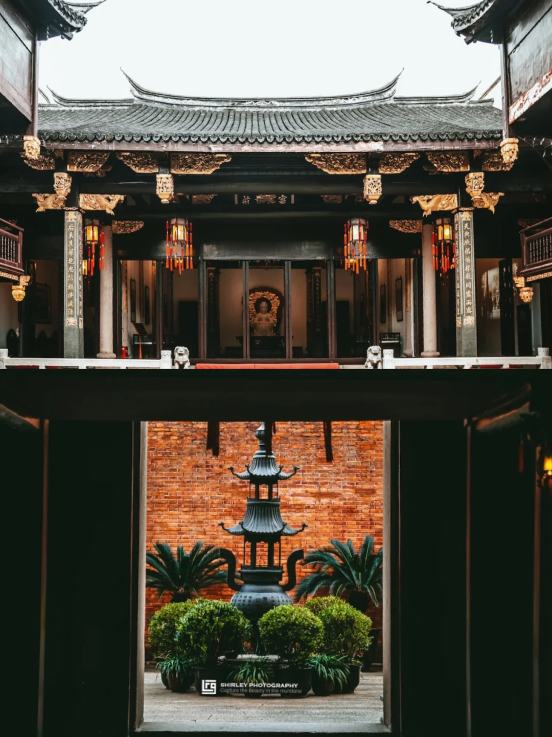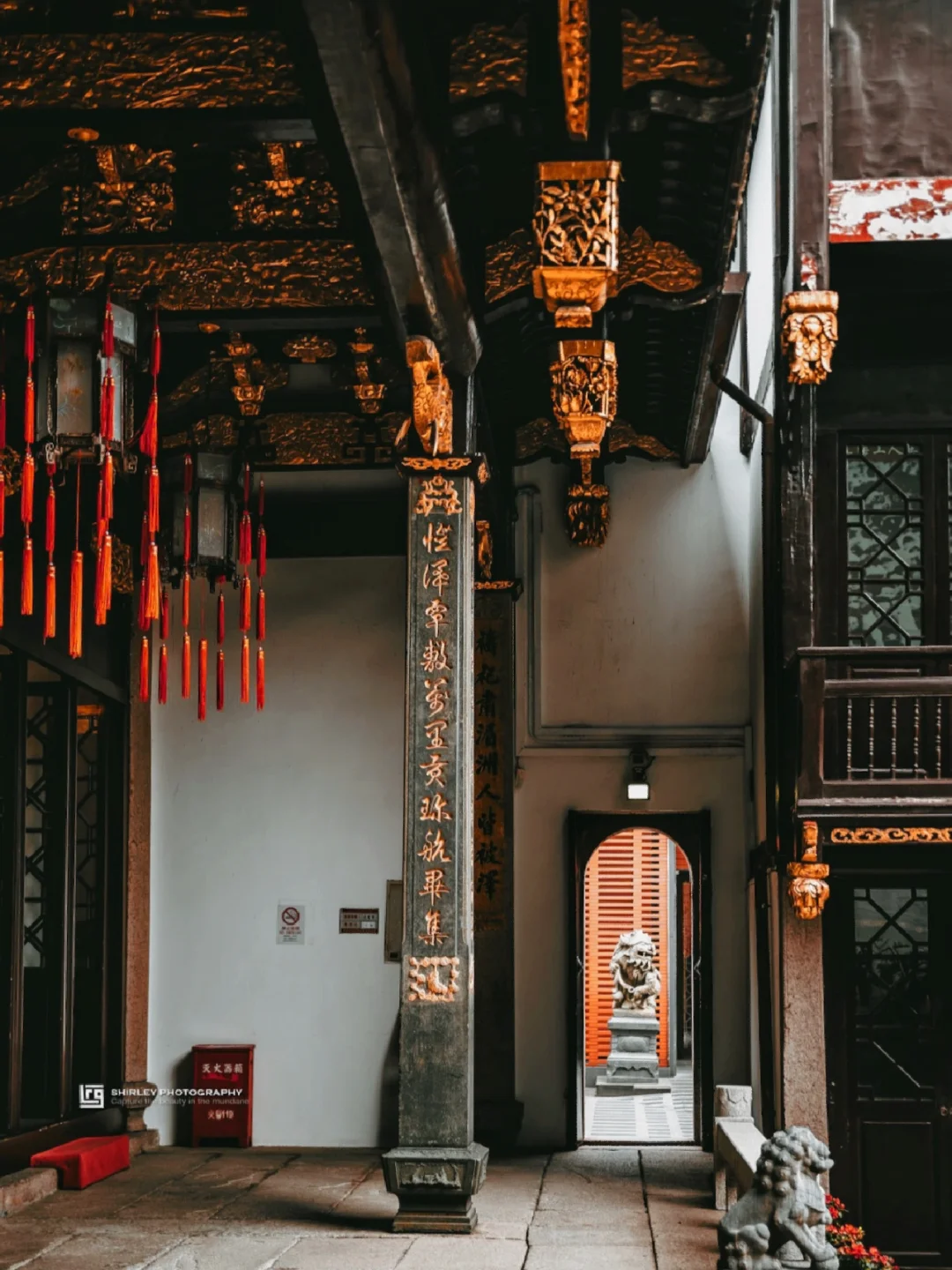 ▫️会馆四面被10多米高的清水红砖墙围合了起来。穿过狭窄的券门,便是豁然开朗的中庭。中庭院落由正殿天后宫、古戏台、以及围绕两侧的二层展厅所组成。是整个景点参观的重头戏。