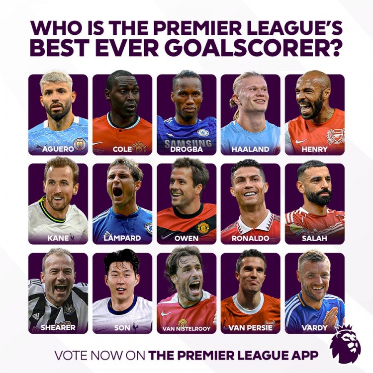 直播吧10月8日讯英超官方社媒发起投票,选出联赛历史最佳射手,球员数据如下: