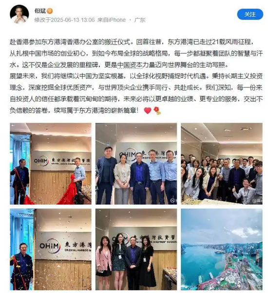 今年6月13日,但斌参加东方港湾香港办公室搬迁仪式的时候曾表示,从扎根中国,到布局全球,这不仅是企业发展的里程碑,更是中国资本力量迈向世界舞台的生动写照。