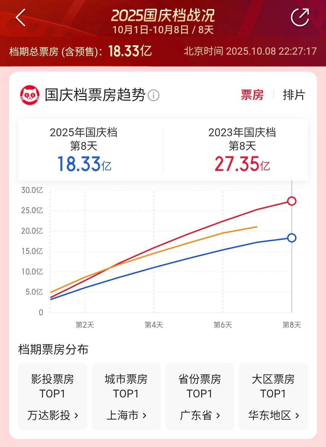 颇为乏力的一届国庆档落幕了,8天没卖过去年7天,单片6亿是守不住了……造浪吧国庆