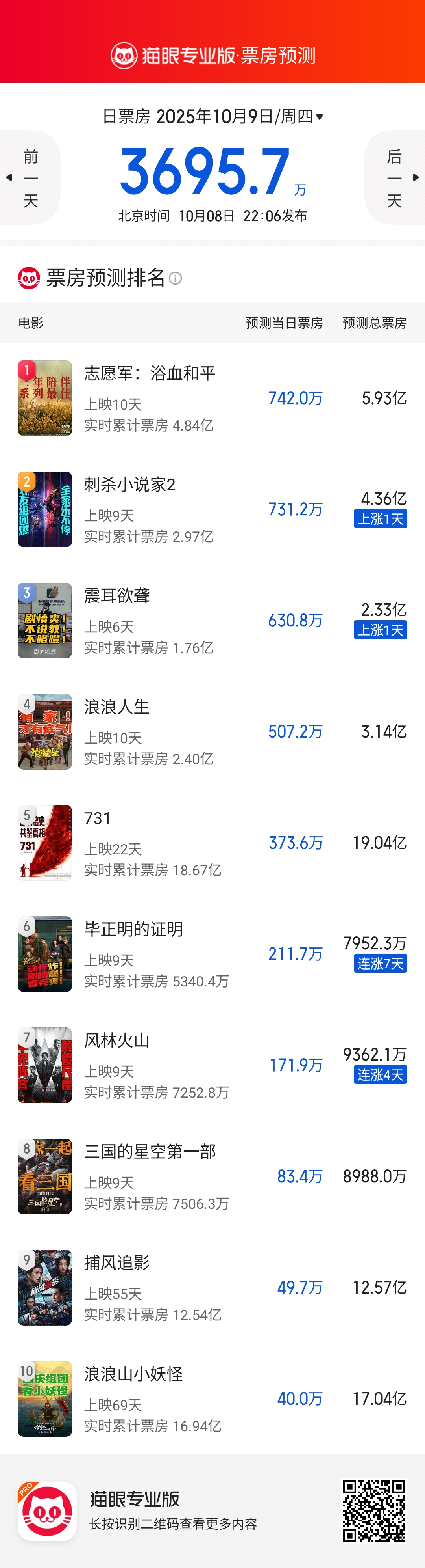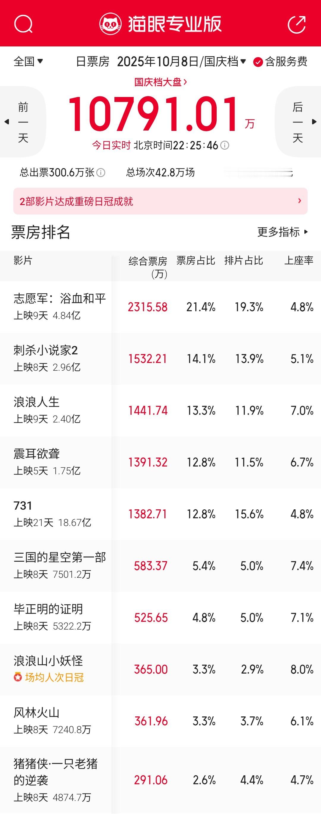 颇为乏力的一届国庆档落幕了,8天没卖过去年7天,单片6亿是守不住了……造浪吧国庆档