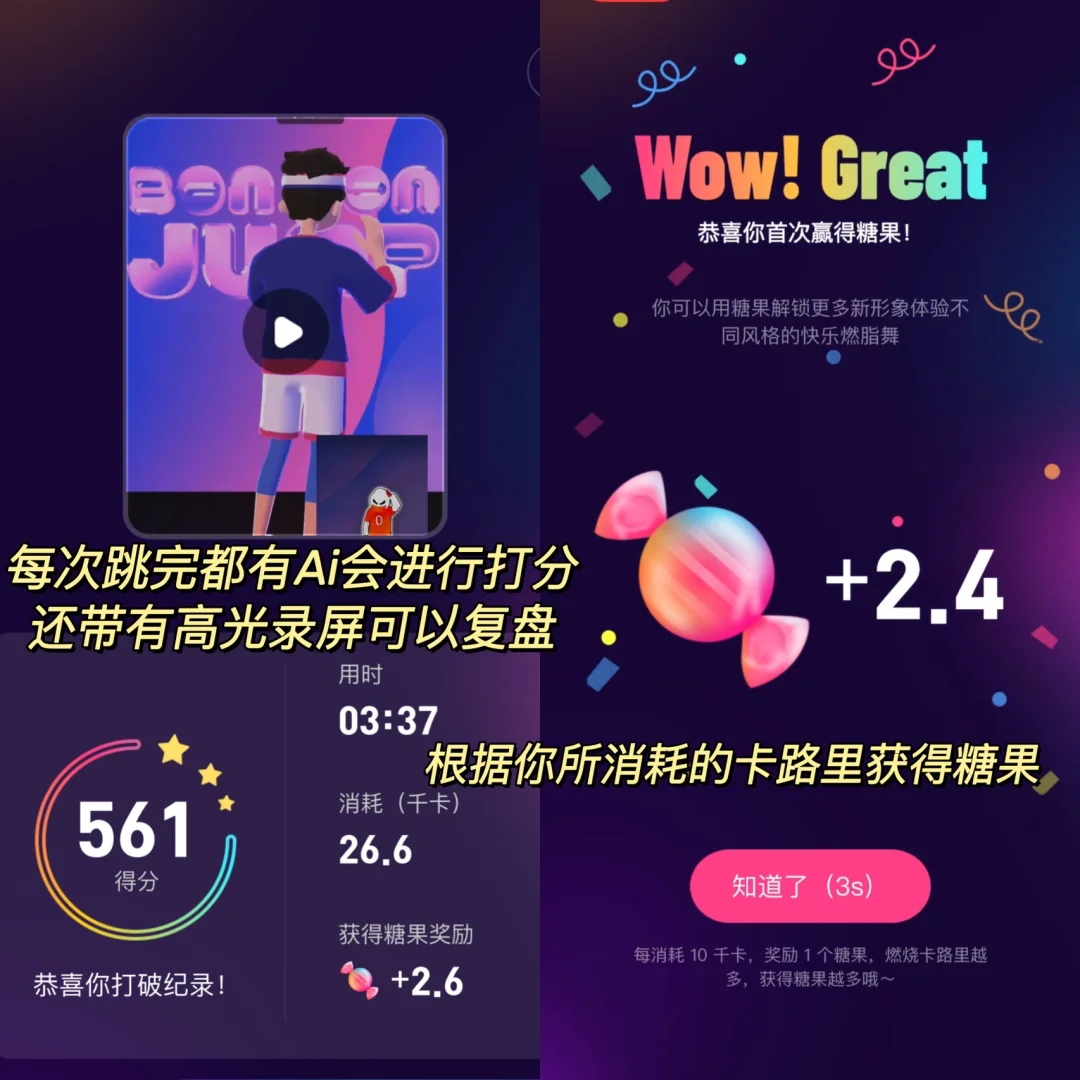 设计的很好看的虚拟3D跟跳形象对社恐太友好了,随时随地都可以跳起来,而且里面跳的时候还会有鼓励口号和Ai评分,kpop一响起来快乐感就来了!就好像真的拥有了一台私人的跳舞机[派对R]~