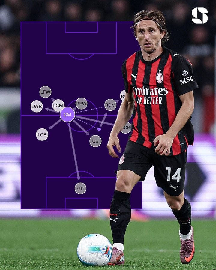 40岁宝刀不老!莫德里奇赛季至今368次传球成功,排意甲球员榜首