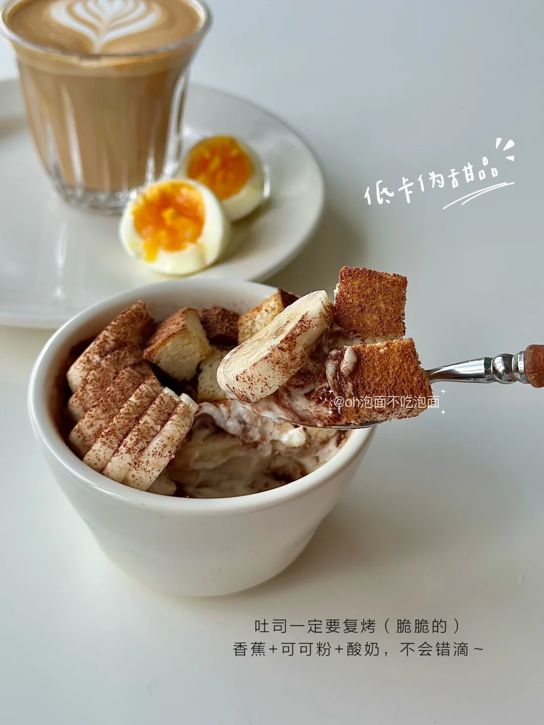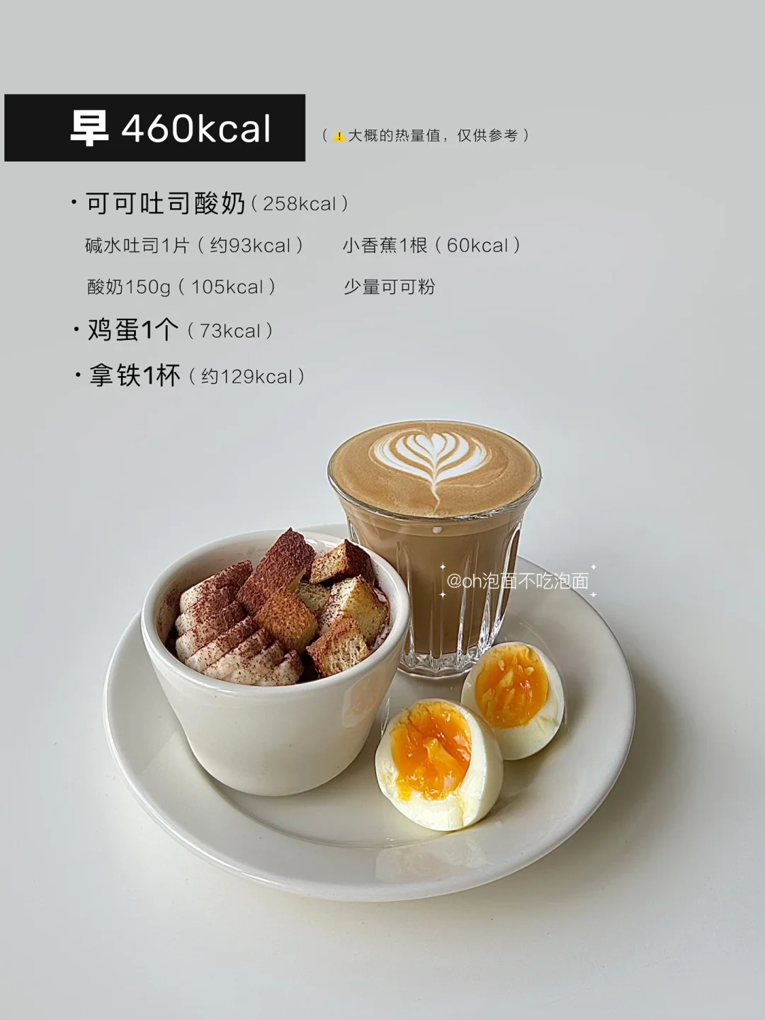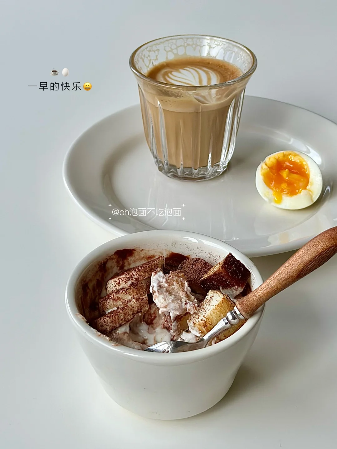 早:可可吐司酸奶碗,鸡蛋,拿铁