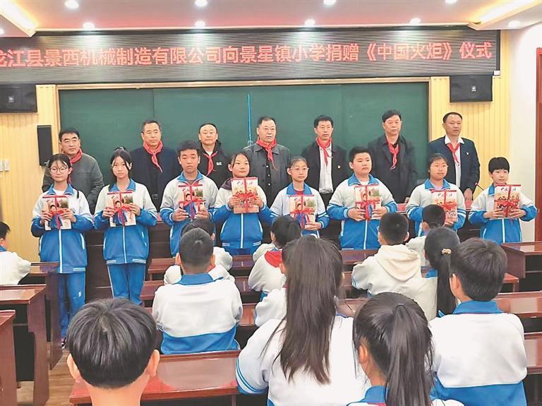 龙江县一家企业向小学生捐赠图书。本报记者苏强摄