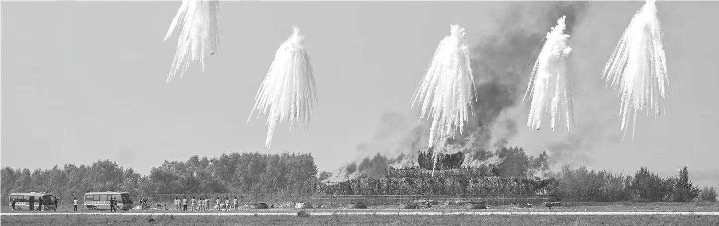 图为借助直升机、无人机等各类新型装备进行灭火演练。本报记者查金辉摄