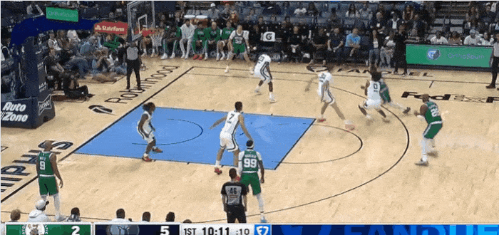 虎扑10月09日讯NBA季前赛,凯尔特人对阵灰熊的比赛正在进行中。