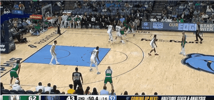 虎扑10月09日讯NBA季前赛,凯尔特人对阵灰熊的比赛正在进行中。
