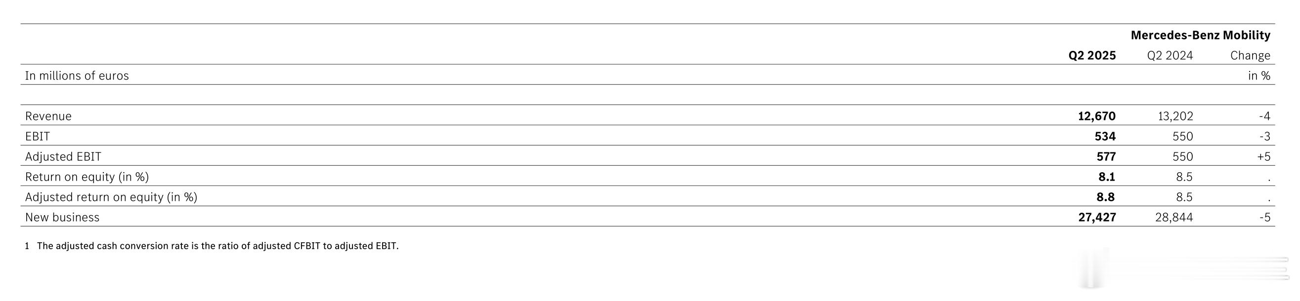 看了一下上半年的Mercedes-Benz Mobility AG财报,表现是比车辆制造这块业务好的。截图上的Q2应该是Q1-Q2,这是官方财报的BUG。