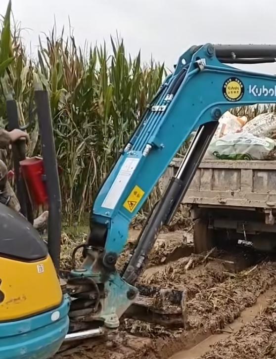 河南百姓收秋着实不易,他们在雨幕中、泥泞里争分夺秒抢收粮食。各种大型机械纷纷登场,吊车、挖掘机、铲车各展其能,就连高科技无人机也派上了用场。能收则收,尽量想办法抢收,为了多一点粮食不计成本地投入。