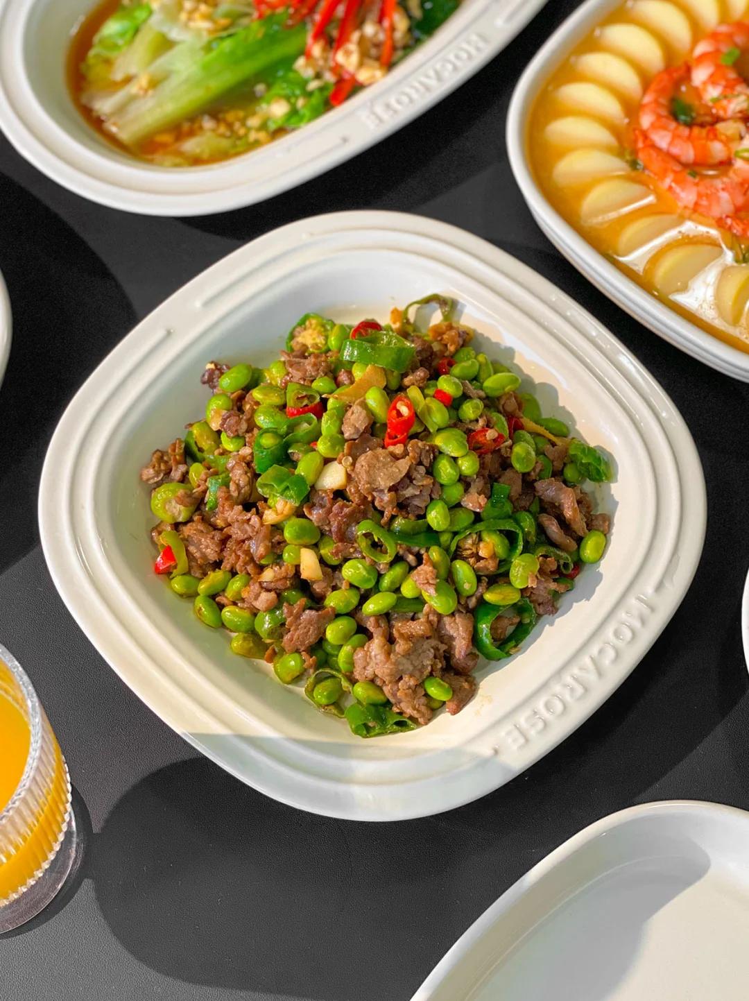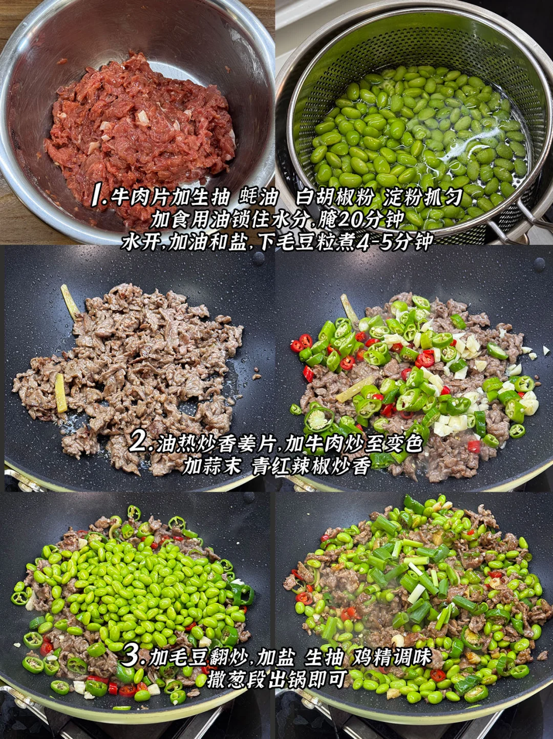 🥩毛豆炒牛肉:牛肉提前腌过,炒出来滑嫩不柴,搭配鲜甜的毛豆,配着米饭能多吃两碗,妥妥的下饭菜。