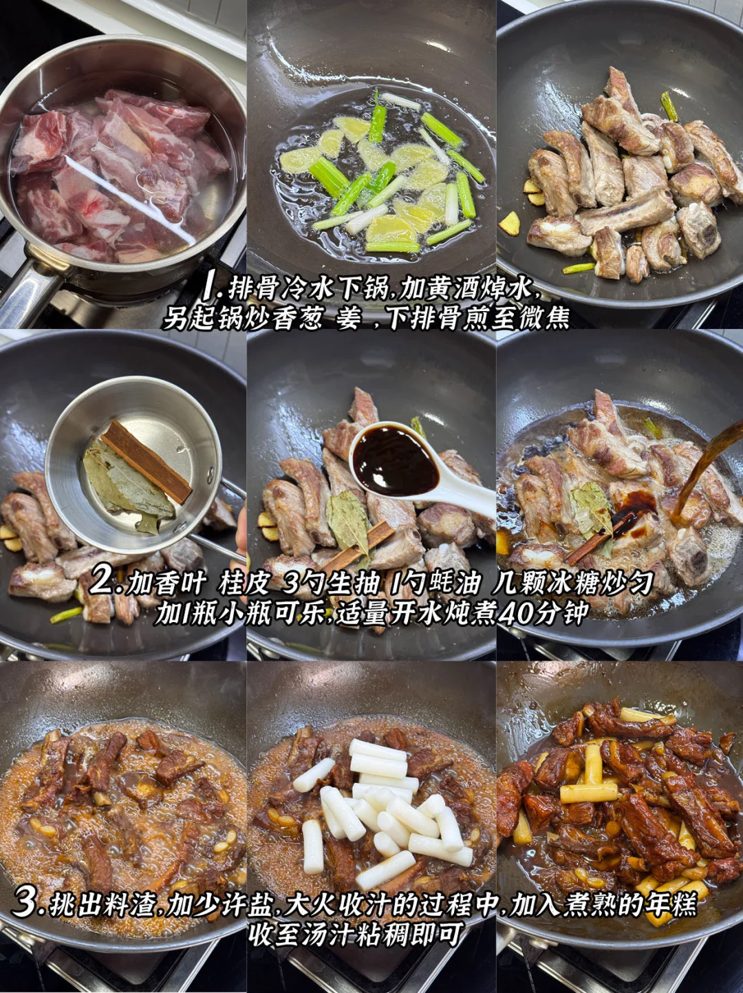 🥩可乐排骨年糕:排骨炖得超软烂,一咬就脱骨,裹着甜甜的可乐酱巨入味,年糕吸满了肉汁,糯叽叽的,吃起来很满足。