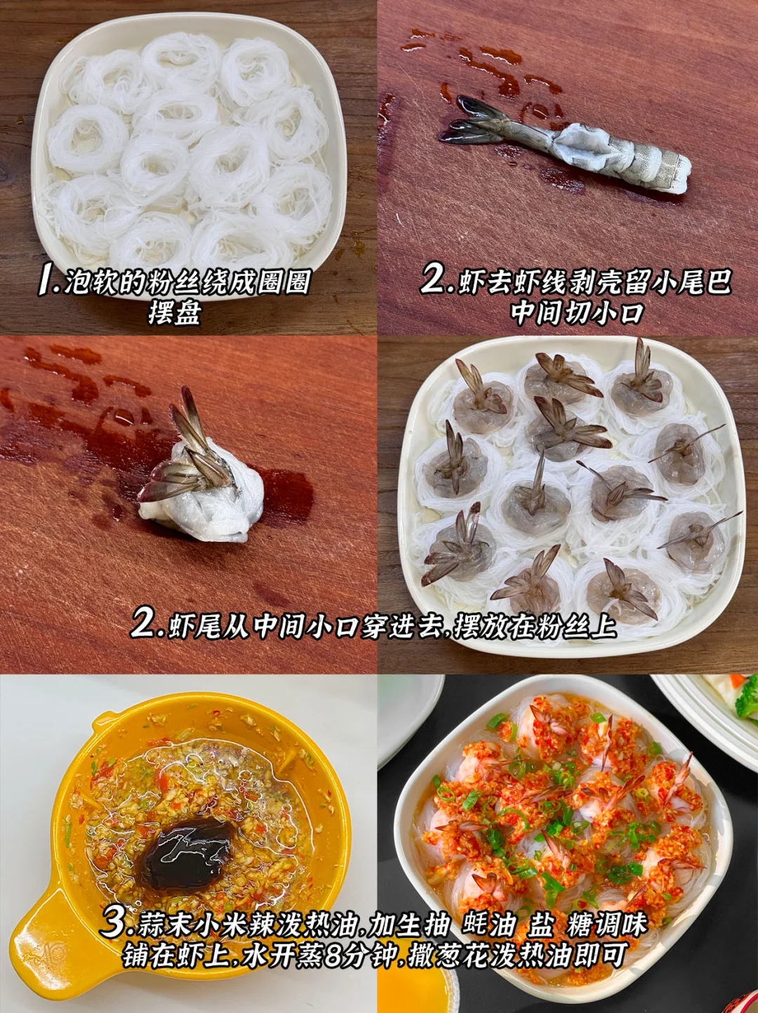 🦐蒜蓉粉丝虾:盘底的粉丝吸足了鲜汁,比虾还抢手,每次做都被抢着吃。