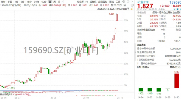 10月9日,截至14时19分,表征板块的$矿业ETF(159690)放量涨9.00%,第一权重股紫金矿业年内涨幅已翻倍。